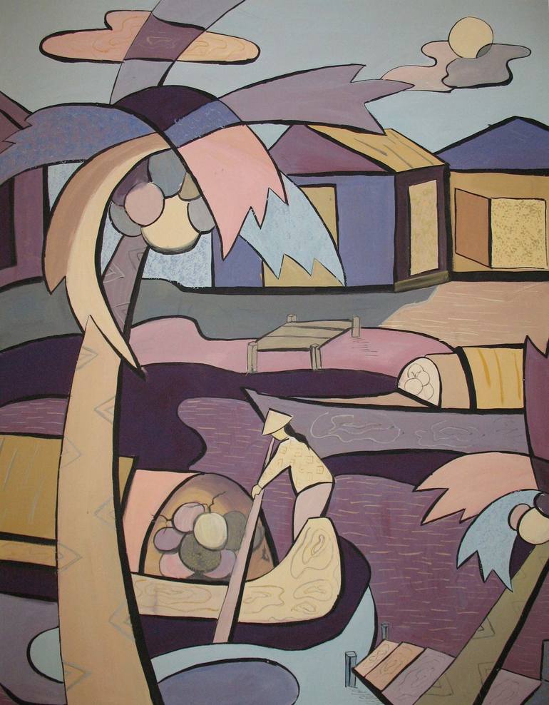 Rowing on the river Landscape painting has always been an inspiration, an endless topic for painters, from the rustic rural scenery of the countryside to the trees, waterfalls of the mountains, majestic high mountains. of nature. Or go to the old houses, the streets of modern cities, the waves of t...