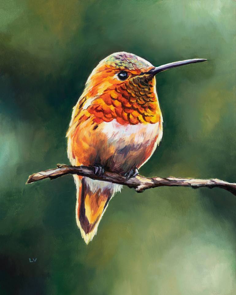 Rufous hummingbird painting. This a framed bird oil painting. This cute hummingbird on branch is a great wildlife piece for farmhouse decor. Also a unique gift for mum ot bird lover gift! DETAILS: ● This is an ORIGINAL OIL PAINTING on a wood panel. ● Title: Rufous hummingbird in the wild. ● SIZE...