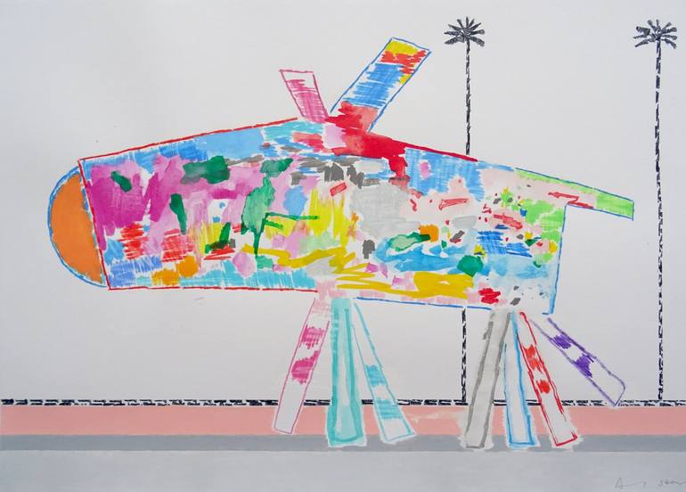 Running Dog On The Boulevard. Acrylic on paper 2023. Signed by Andy Shaw. Ready for framing.