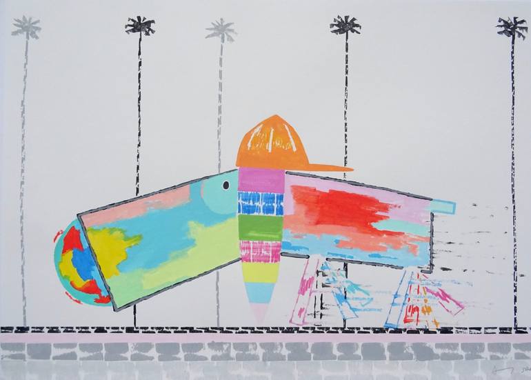 Running Dog On The Boulevard. Acrylic on paper 2024. Signed by Andy Shaw. Ready for framing.
