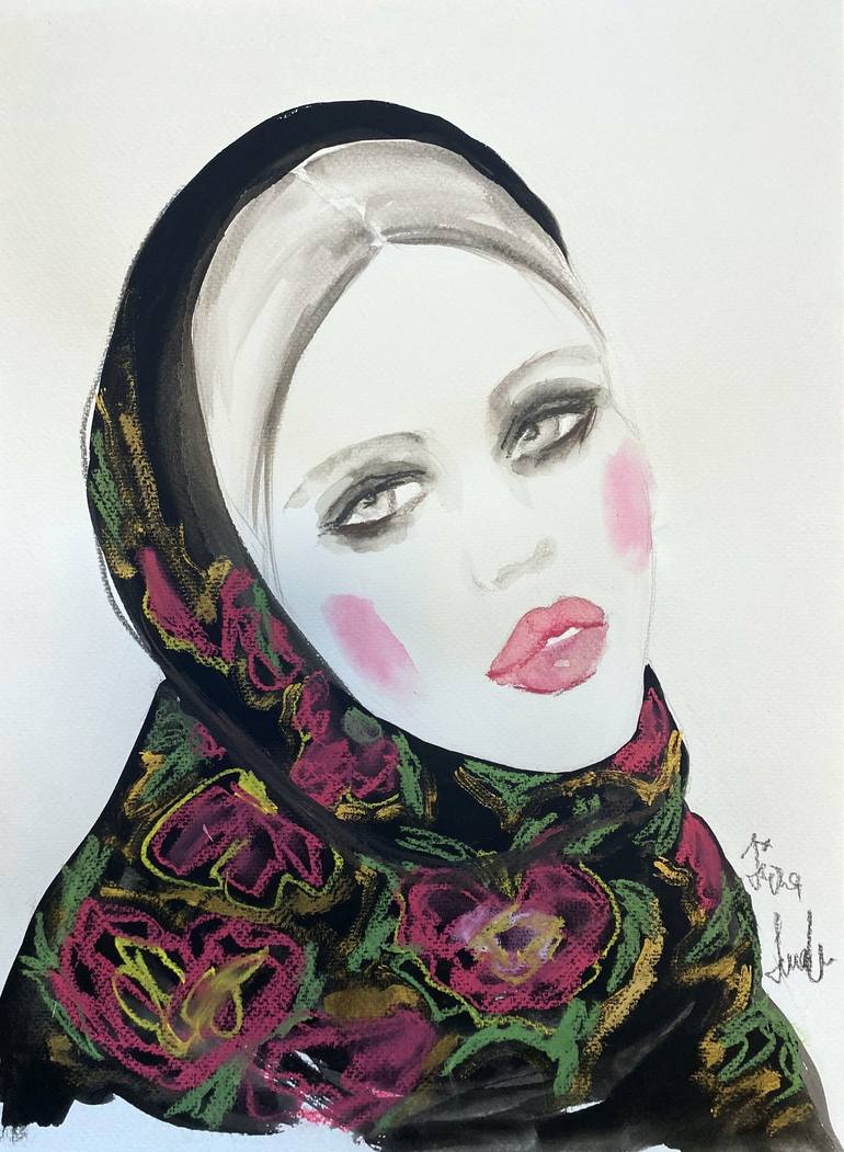 Russian doll – watercolour, pastel on paper. 16.5in x 11.5in. Original. Signed on front. Comes with a certificate of authenticity and a hand written thank you note. This little beauty was inspired by my collection of Russian nesting dolls. It's my take on a Russian doll. The watercolour paper is 200...