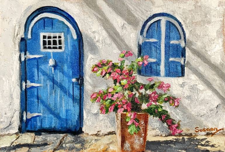 This is an impasto style painting done with brushes and palette knife techniques. This painting comes framed (14.5W x 10.5H x 0.7D inch including frame), is varnished and is ready to hang. Pictures shown are of the actual frame. In this painting, I tried to capture the rustic bright blue door again...