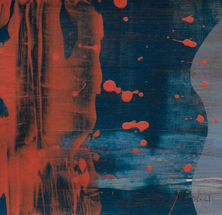 Acrylic on paper. Features metallic teal and metallic orange paints.