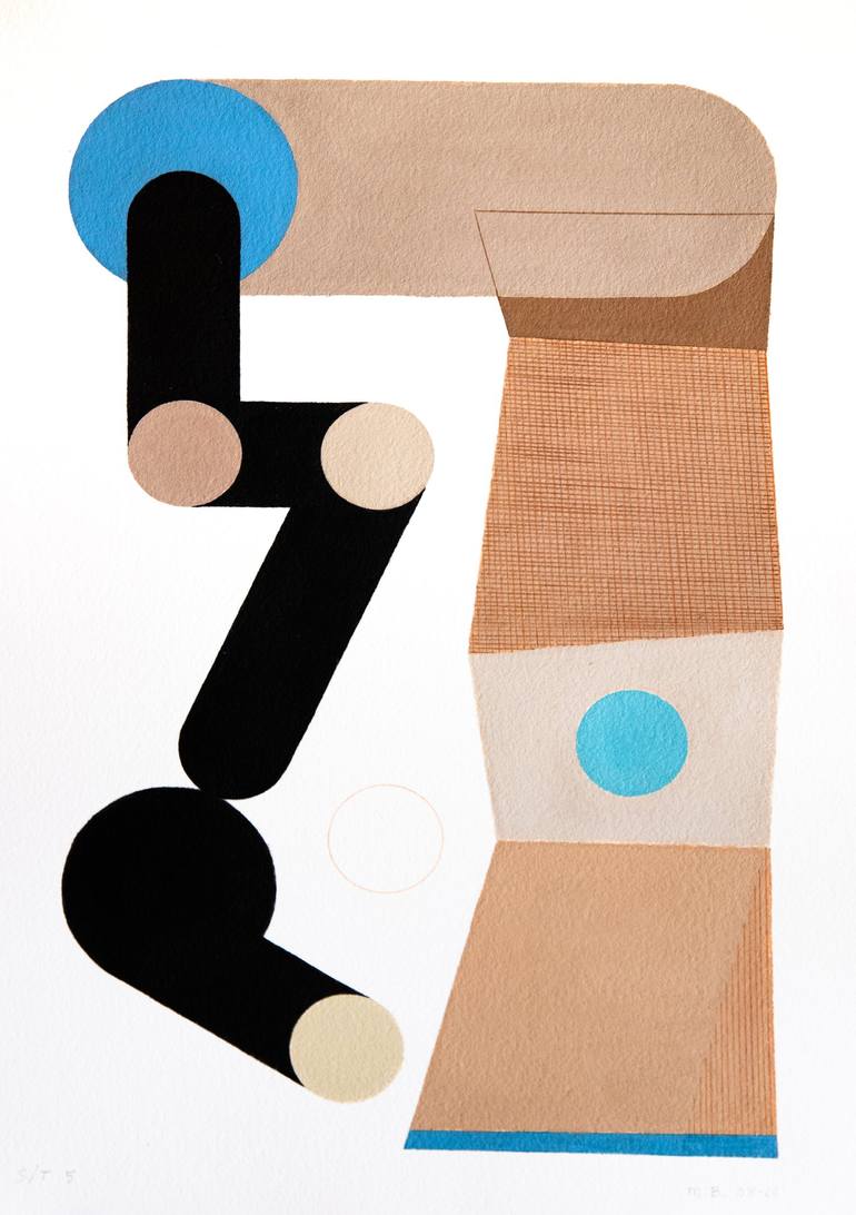 This work is made in acrylic on handmade paper, to create textures I have made straight or oblique lines with colored pencils in some parts of the composition. It is a work that I make without any previous sketch, I start from a blank space and I fill that space with different geometric shapes until...