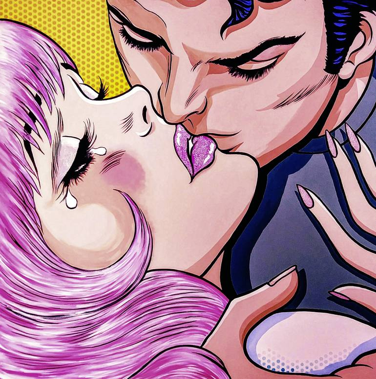 SAD LOVE | POP ART Original acrylic paint on canvas | 2018 The romance comic has a very peculiar interpretation of love and fidelity. In its pages of yesteryear, you can generally see women with their lovers kissing and crying at the same time. The plots of the romance comic evoke an unusual mi...
