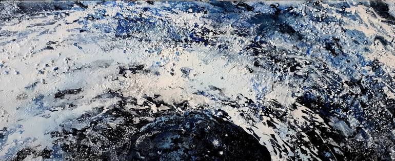 Water,wave,sea wave,tsunami,dynamic painting blue abstract work, mixed-media technique with acrylic colors,sands,pigments; size: 120cm width, 50cm height, 2cm depth