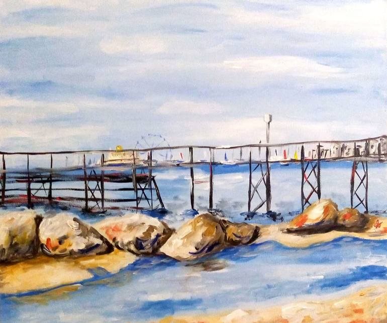 Opera realizzata in acrilico su tela, dimensioni 60x50 cm, telaio di spessore di 1,5 cm. Il quadro raffigura lo scorcio di una spiaggia dell'Emilia Romagna in Italia; una giornata calda ed assolata senza turisti, un momento per ammirare i colori tutto per sé. L'opera racconta di una giornata di fel...