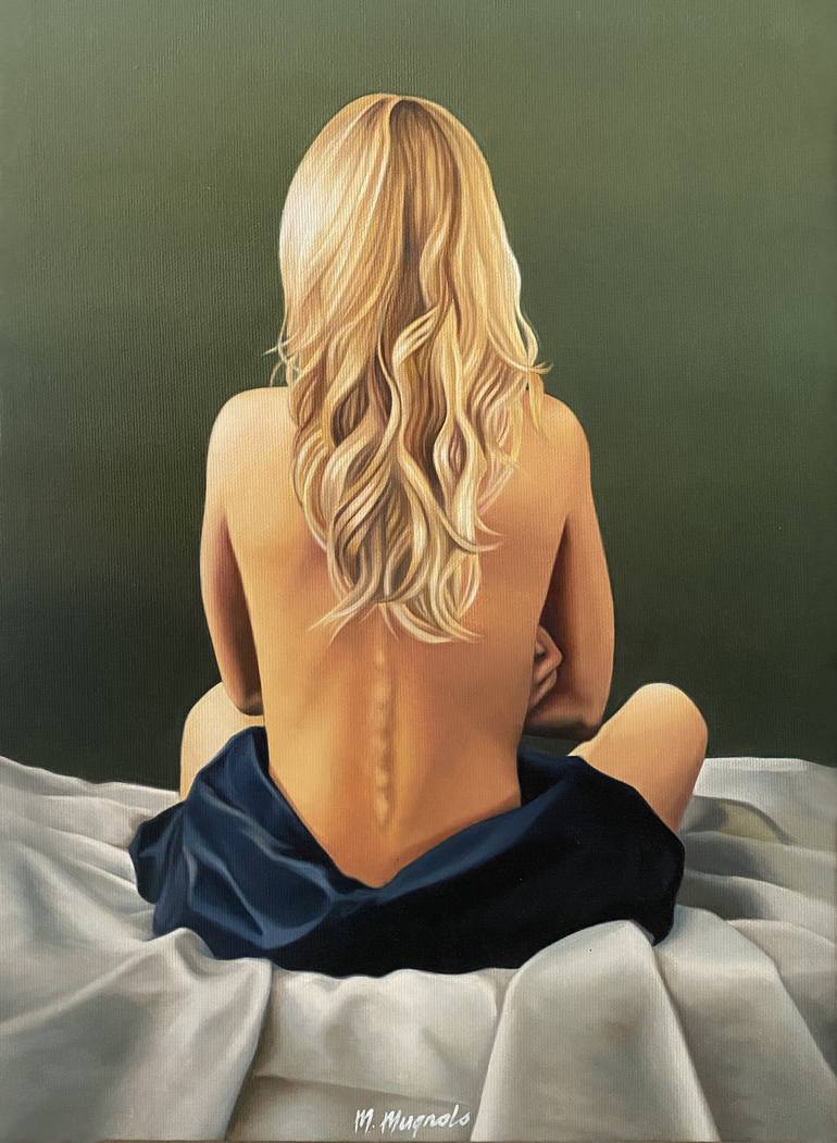A sensual back of the beautiful blond in a hiperrealistic technique