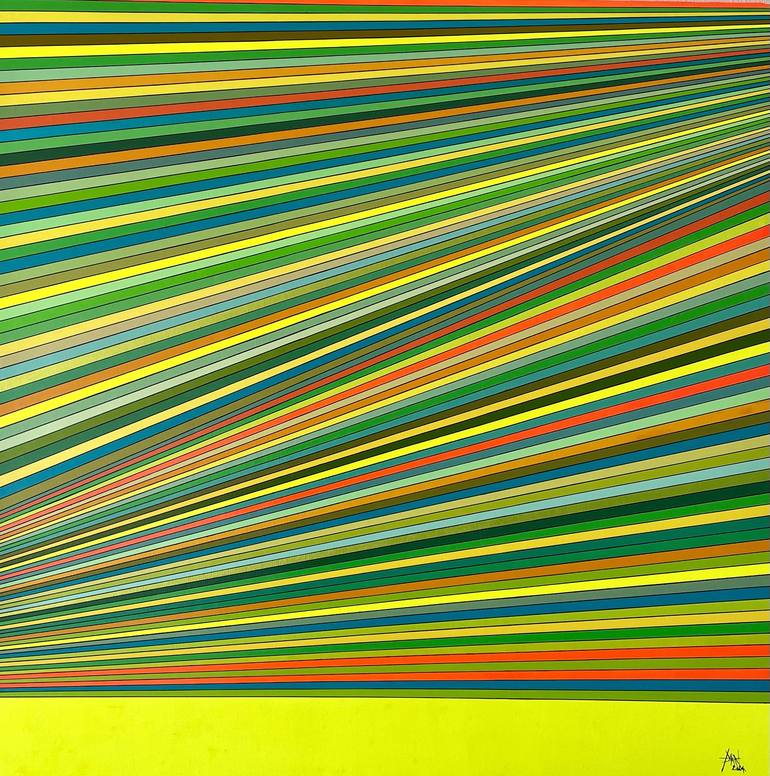 Détails de l'œuvre Technique : Acrylique sur Toile Finitions : Oeuvre sur châssis. Prête à être accrochée. Dimensions : 100x100cm À propos de l'oeuvre Dans cette œuvre, j'ai exploré l'énergie des années soixante-dix à travers un kaléidoscope de lignes vibrantes. L'acrylique m'a permis de capturer...