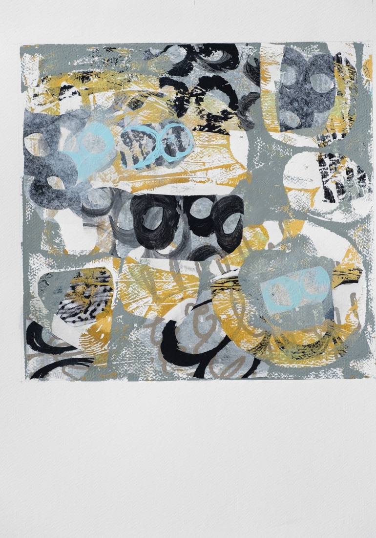 I used a palette of blues and sandy tones to create an abstraction of a water's surface and using broad strokes to create movement and depth, to evoke the serenity of shallow waters. I left the white of the paper for highlights to suggest the play of light on the water.