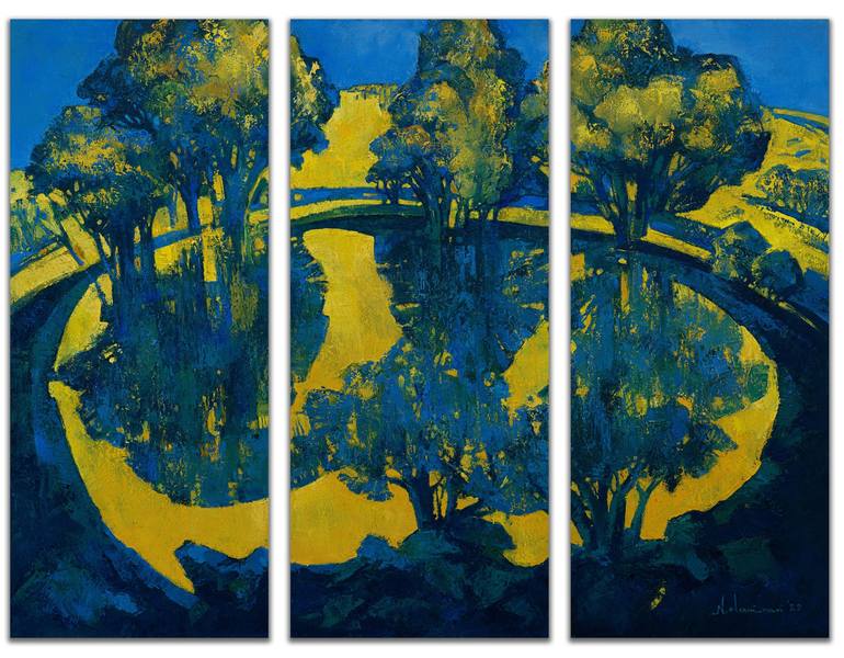 Original painting, oil on canvas, triptych, L format Title: “SILENCE”, series “Beauty Will be the World's Salvation” Year of creation: 2022 Size: 111 x 90 cm (triptych: 3 pieces of 37 x 90 cm) !! READY TO HANG !! The painting will be shipped stretched on an original wooden frame and ready to hang. ...