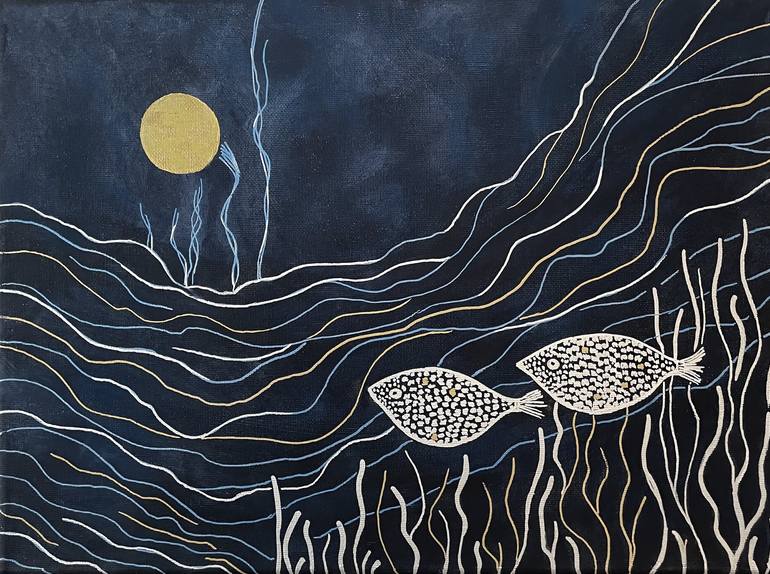 Minimalist ocean magic in silver This isn’t just a painting—it’s a mood. When evening shadows stretch and light falls at an angle, two silver fish come alive on your wall. They will: Glimmer like moonlight in your bedroom Soothe your gaze in the home office after a long day Surprise guests in the...