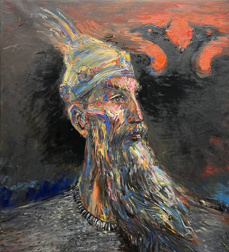 Portreti i heroit kombetar Gjergj Kastrioti Skenderbeu. Ritratto del condottiere albanese Giorgio Castriota Scanderbeg . Oil on canvas painting . Both sides signed. © 2023 Altin Furxhi All rights reserved .Ready to be hanged. Category : Painting ; oil painting Subject : People and portraits Substra...