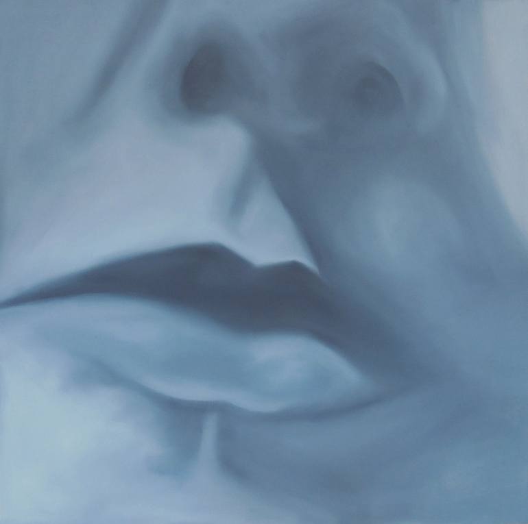 The image was created from a random selfie photo, passed through filters and cropped into a square shape like all images from the Stomak series. Reduced in shape and color, soft skin, looks abstract and can be turned and placed from all sides.