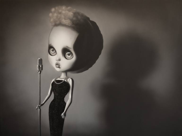 The inspiration for "SONGBIRD" stems from a fascination with the juxtaposition of innocence and melancholy. I sought to explore the delicate balance between vulnerability and strength, personified through the figure of a young singer standing alone in the spotlight. Her large, soulful eyes are windo...
