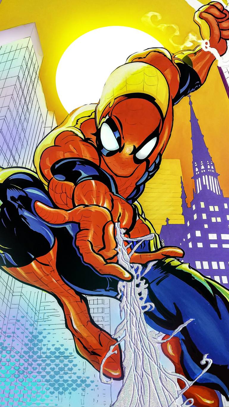 SPIDERMAN | POP ART Original acrylic paint on canvas | 2020 This little insect that roams the big cities and identifies with young people was created by King Midas of comic art. I mean Stan Lee. Everything this genius is inspiring to be drawn and painted. The large format is ideal to highlight ...
