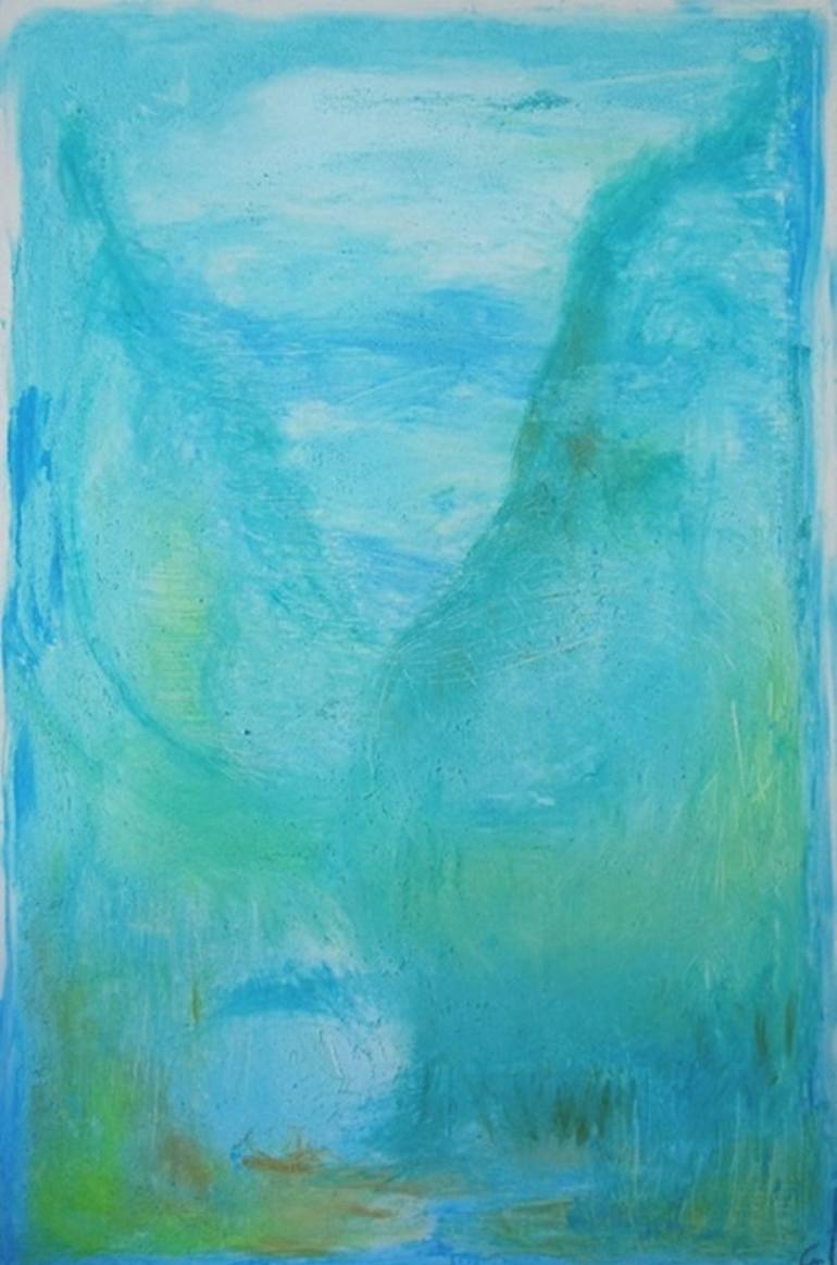 The love for Furlo, which is the village where a grew up and the color of the Candigliano river inspired me in the choice of light blues and aqua green, bright and summery colors. Abstraction means moving away from something and interpreting reality with one's own vision, inventing color combination...