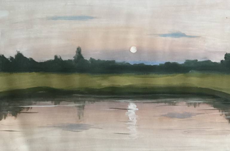 Original Gouache painting on paper " Summer night " • Artist - Anastasia Terskih • Comes with a certificate of authenticity • Unframed Height: 42 cm / 16.5 inches Length: 59.4 cm / 23.3 inches