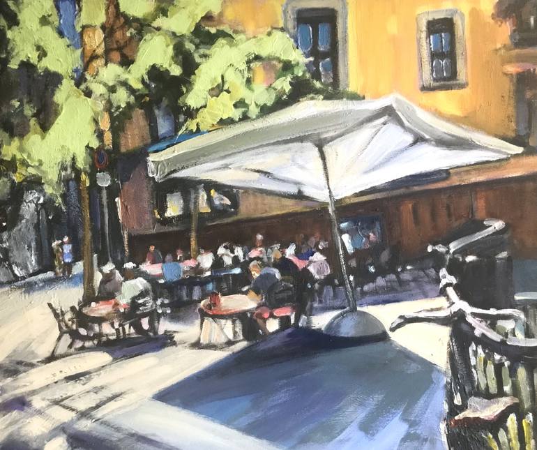 The picture was painted from memories from a trip to Barcelona. A peaceful, quiet life under the rays of the spring sun.