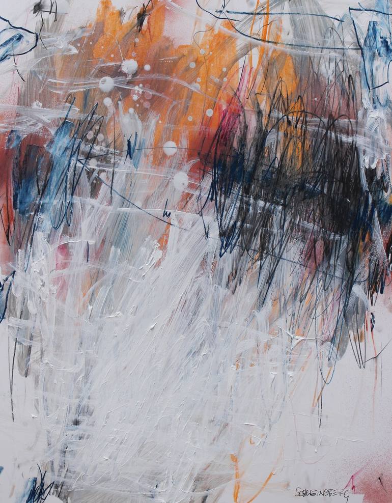 "Powerful, dynamic, and full of energy. With an intense vibrancy that touches and moves the viewer directly – that’s how I would describe my paintings in two sentences. My work is an expression of vitality and inner strength. It thrives on contrasts and tension: The viewer enters a dynamic interplay of chaos and order, impulse and control, lightness and depth. As an artist, my goal is to release energy and spark impulses in the viewer that extend beyond the canvas. Through the visual power of my work, a space emerges where perception and emotion connect: The viewer responds not only rationally, but emotionally. The energy, dynamism, and expression of the paintings immediately engage the viewer and unfold their impact – both in the surrounding space and within. Artistic creation is, for me, a space of freedom and expression – a place where I follow my intuition and give shape to imagination. It fulfills me to create something new, unique works that have never existed before. Painting is a vibrant, creative process that continually challenges, inspires, and excites me. I usually begin spontaneously – from a mood, an impulse, or the desire to work with a specific color or technique. In dialogue with the painting, a story begins to unfold – shaped by the works expression, form, and the emotions it evokes. External influences also flow into this process: personal themes, social trends, current affairs – all of it is interconnected. With my titles, I try to capture this story without limiting the viewer’s freedom of interpretation. On the technical side, I explore contrasts and bring them into dialogue: color meets non-color, line meets area, light meets darkness, emptiness meets fullness. These fields of tension are my experimental ground. I often work in large formats because I need space – space for movement, for energy, for the unpredictable. Every brushstroke is a decision, every moment an impulse. It is an intense, physical process in which I surrender to the flow while consciously shaping it. Although my works are abstract, they evoke associations. Some recall nature, landscapes, or the sea – places that ground us and help us reconnect with ourselves, places essential to our being. Others suggest emotional spaces tied to feelings like safety, love, or comfort. My paintings do not depict but suggest – creating and leaving room for personal associations.