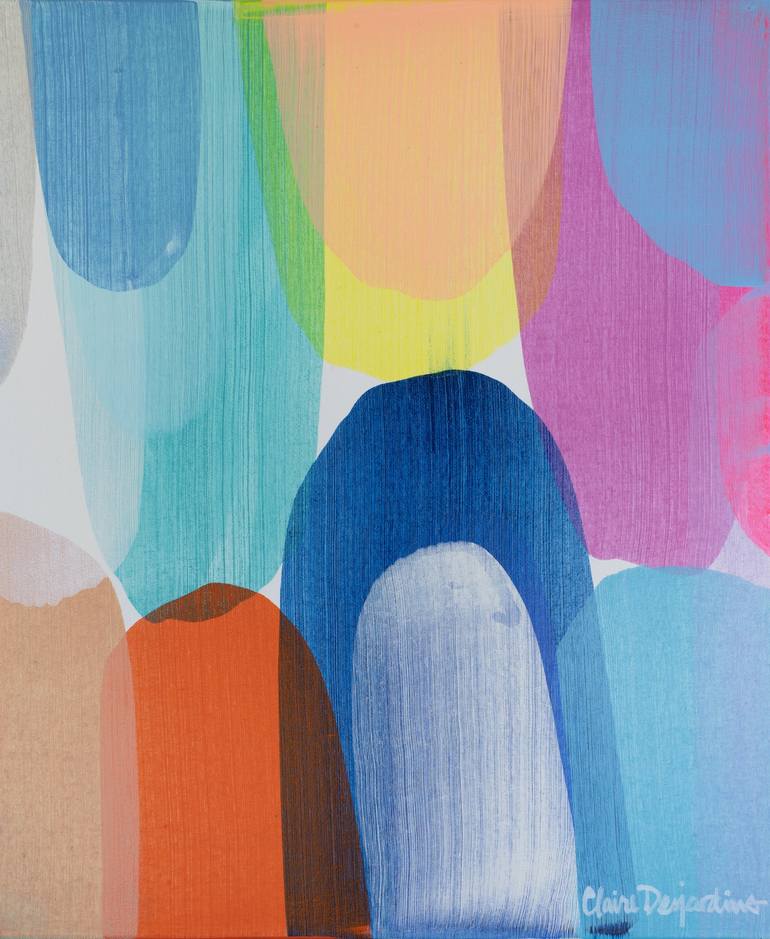"Hi, I'm Claire Desjardins. It's really nice to meet you. I help to create happiness by infusing moments of joy in everyday lives." Claire Desjardins (b. 1965, Montreal) is an award-winning Canadian artist living and working in Gore, Quebec. Working primarily in painting, her formally driven work focuses on gesture and colour, emphasizing energetic, animated brush strokes and bold palettes. Her work is both highly abstract and highly personal, a dynamic expression of sentiments or reactions of which she is consciously unaware. She regularly exhibits her work in galleries and art fairs throughout North America. In addition, she frequently teaches painting workshops and has served as a jury member on several national art prizes. Claire has been involved with collaborations with major brands such as The Ritz-Carlton, Anthropologie, Urban Outfitters, Microsoft, Shutterfly, among others. In Spring 2019, Claire launched her new signature collection of art apparel, Claire Desjardins, which is sold in stores across the US and in Canada, in the UK and New Zealand. She has live-painted on stage with the likes of Randy Bachman and Blue Rodeo and Styx. Her artwork was auctioned off, and the 100% of the proceeds were donated to help sick kids. Her work can be found in both private and corporate collections around the world.