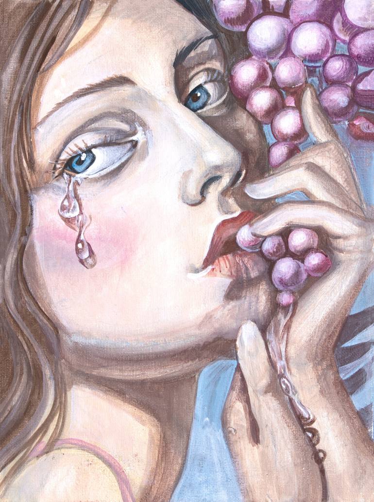 I did this artwork remembering my grandmother, she had a print of the girl picking grapes in her bedroom. It was a print of the famous artwork by 19th-century painter Carl Brulov. I loved it and spent a lot of time watching it being mesmerised by how the artist painted the light and grapes in a hand...