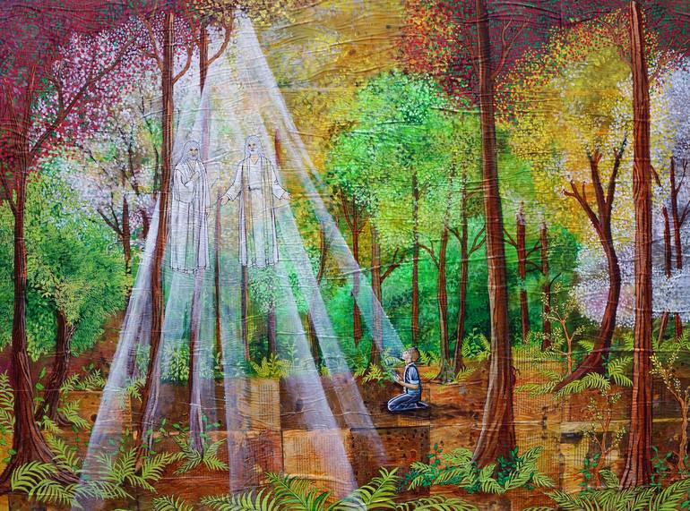 Inspired by the Joseph Smith Papers podcast, this piece focuses on the colors of spring that surrounded Joseph as he prayed. His mother would often retire to the woods to pray, so he was inspired to do the same.