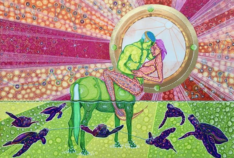 This work is about mitology sagittarius and mermaid as a couple...