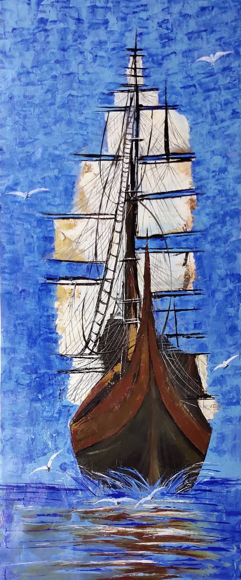 Artist: Nandita Albright * Title: "Sailing Away - 4" * Shipping: Shipped rolled in a tube. You can get this mounted at any local arts/framing store.