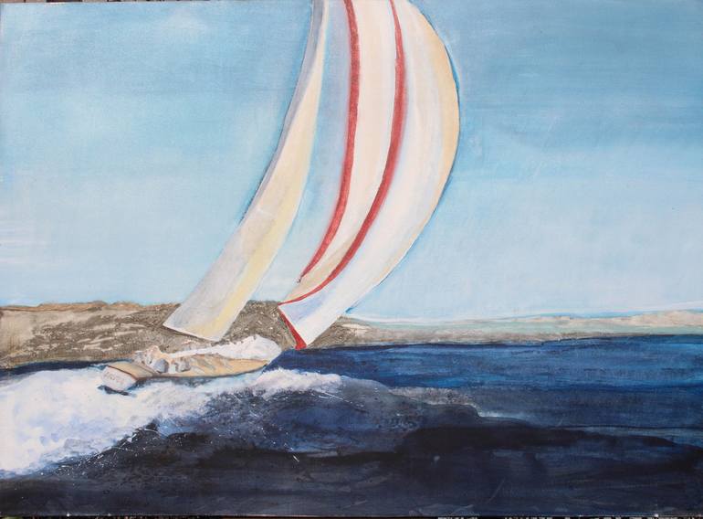 This is a painting of a German Racing sailboat. It captures the speed of the wind while it is peaceful and steady. The sailboat is ready to take off and round the point to the open seas. The painting captures the tranquility of sailing and the peacefulness of the water. It also highlights the locati...