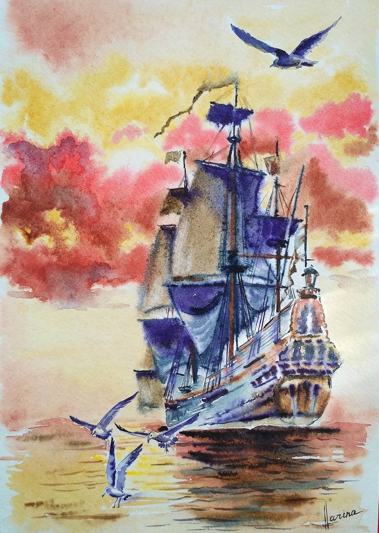 An exclusive unique gift for any special occasion and holiday. Interior decoration. Memory to your relatives, family and friends. Original present. Sailing ship. Original watercolor painting. The brown color scheme conveys the spirit of time. We are attracted to old things that have an interes...