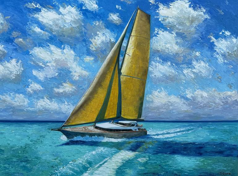 When a boat leaves a dock, all the problems stay on the shore. There is only you, the wind, the sail and the endless ocean. Sailing trip are all about sound of the water, the sunset reflections, the laughter of friends and the excitement of learning something new. The main colors are blue , turquois...