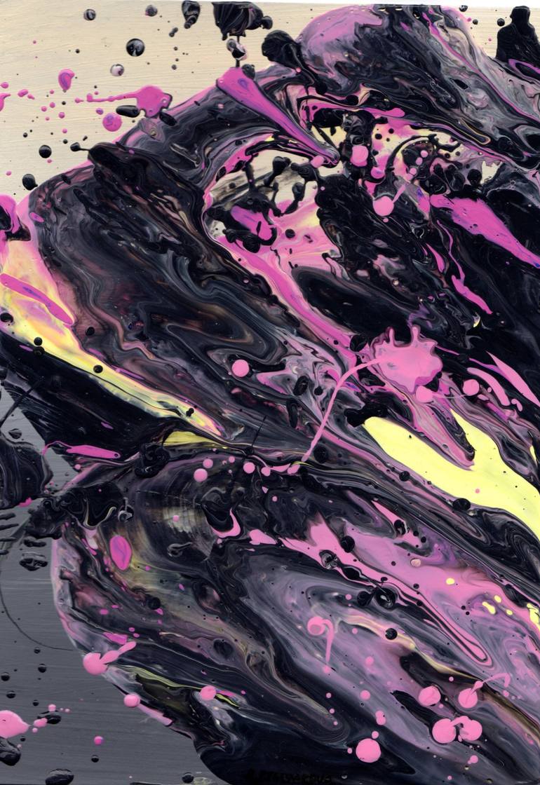 Bright abstraction artwork "Sakura&Gazoline". Perfect accent to your interior. Certificate of Authenticity attached. ABOUT THIS PAINTING Size: 15 W x 21 H cm with a frame (or 5,9 x 8.2 inches) Acrylic paint on cardboard. Painted on paper with light-resistant paint, which means that work will n...
