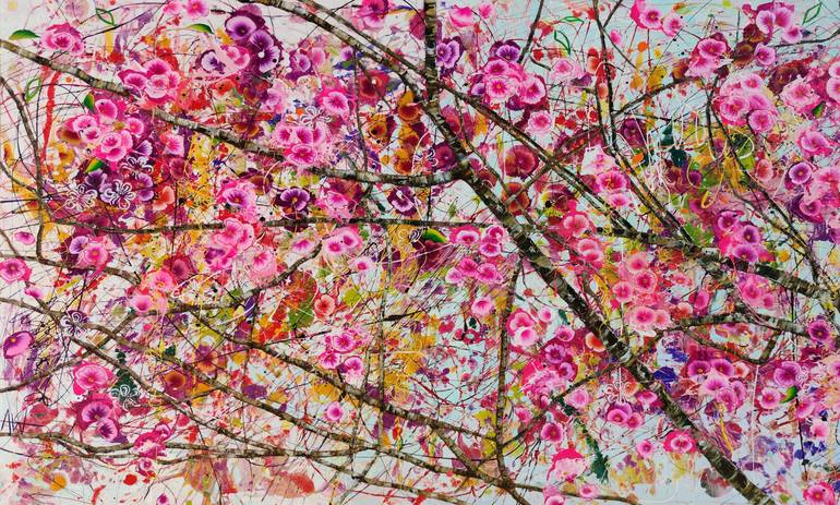Sakura Symphony is a breathtaking large-scale painting that marries the delicate beauty of cherry blossoms with the wild energy of expressionist technique. Sweeping branches stretch across the canvas, adorned with exquisitely detailed blossoms that seem to bloom before your eyes. Splashes of bold, e...