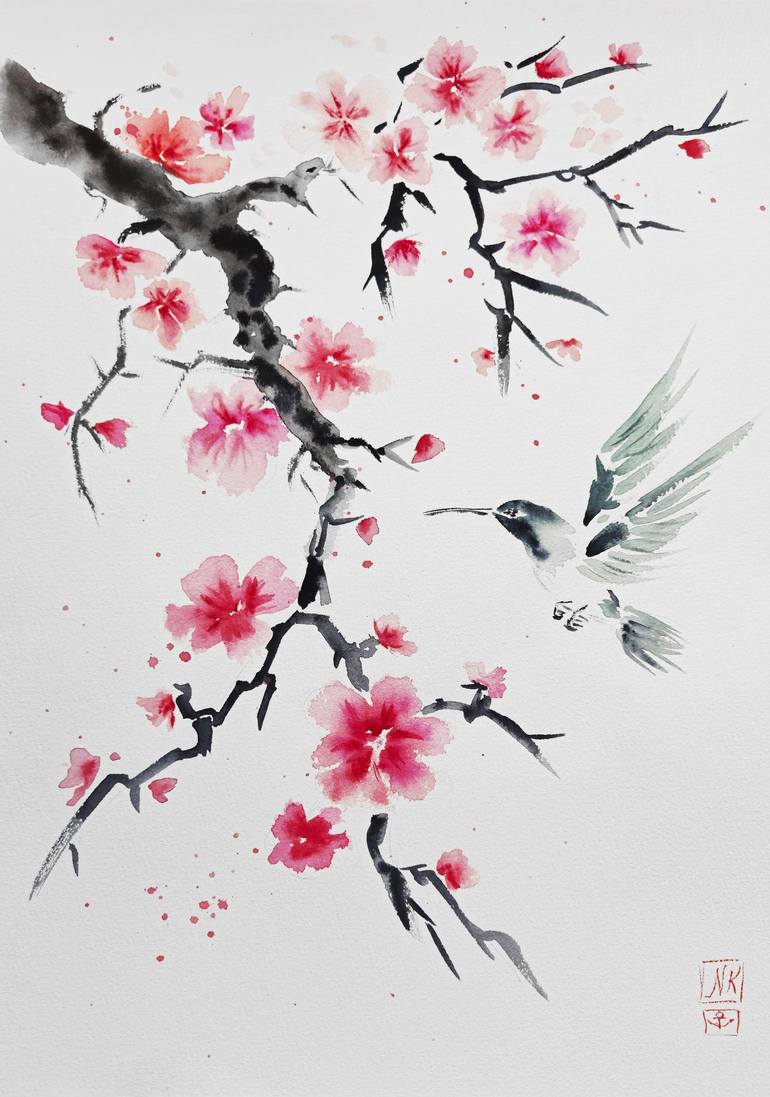 Immerse yourself in the delicate harmony of nature with "Sakura and Hummingbird," an original ink and watercolor artwork inspired by traditional Japanese sumi-e techniques. This serene composition captures the fleeting beauty of sakura blossoms and the grace of a hummingbird sipping nectar. Perfect ...