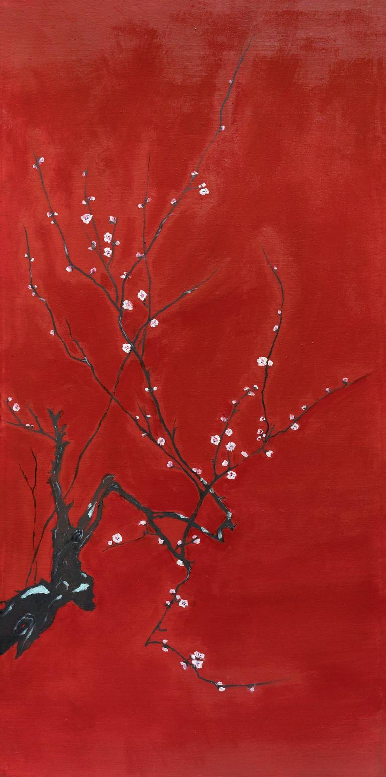 This work is a tree that begins to flower at the beginning of spring. It is inspired by oriental art and I use two of the colors that always catch me, red and black. It is oil on canvas.