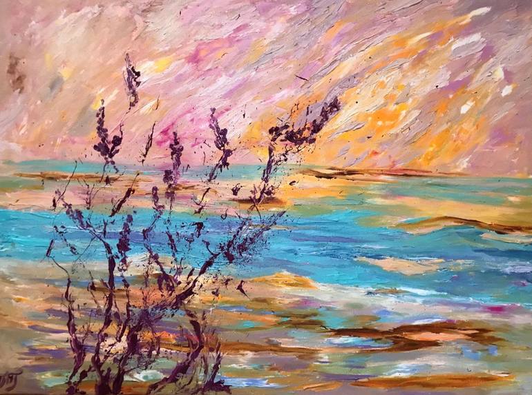 "Salt Lakes" is an oil painting on canvas, measuring 60x80 cm, from the series "And Silence Will Return." This abstract landscape with textured brushstrokes captures the majesty of nature and its ability to heal and renew. The harmony of colors and the depth of the composition evoke a sense of space...