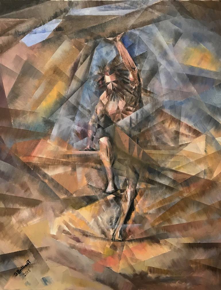 This painting started out as fully abstract, but while working on it, like cloud-gazing or doing a Rorschach test, I thought I saw Samson in the collapsing Temple of Dagon. Sop I went with that.