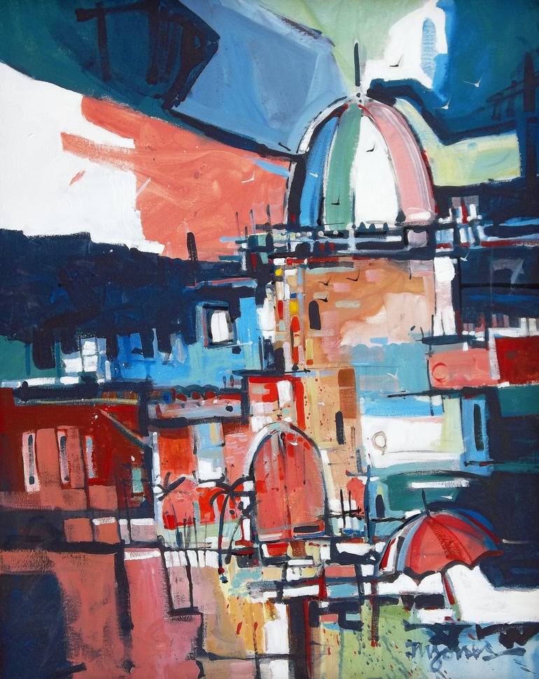 "San Miguel Motif" is an original acrylic painting on stretched canvas by Micheal W. Jones. It was created from my own sketches, and measures 24 x 30".