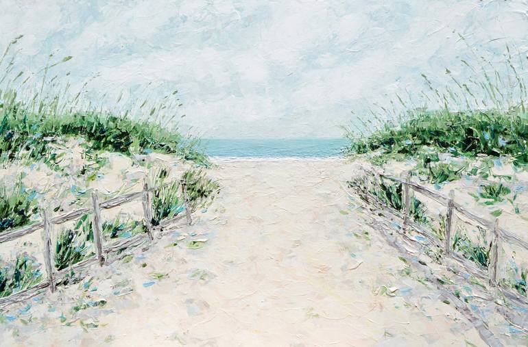 Heavily textured painting of dune grass swaying in the breeze along the walkway to Sandbridge Beach in southern Virginia. Edges painted and wired; ready for hanging.