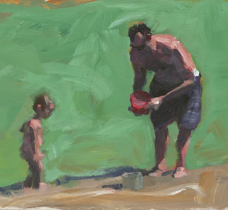 An evocation of everybody's childhood memory - a day on the beach with dad. I try to remove all extraneous detail, and rarely succeed - but I'm pleased with this one. Unframed, on masonite board. Contact me for framing in the style of others on my page