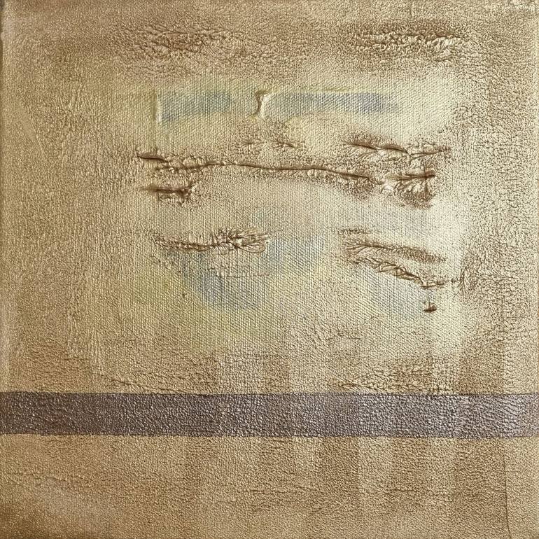 "Sandstorm 2," the second installment of the evocative triptych, continues the narrative set by its predecessor, yet it carves out its own distinctive identity. This canvas is more subdued, focusing on a singular, darker brown line that cuts across the gold background. This line, representing a road...