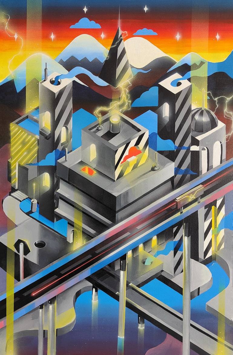 I painted this work as my first artwork in the western hemisphere, bringing the actual vision of futuristic Asia for 11 years, mixing the andean landscape, the colors of Latin-america with an introspective concern on the future of Civilisation, an optimistic abstraction of what the new world will be...