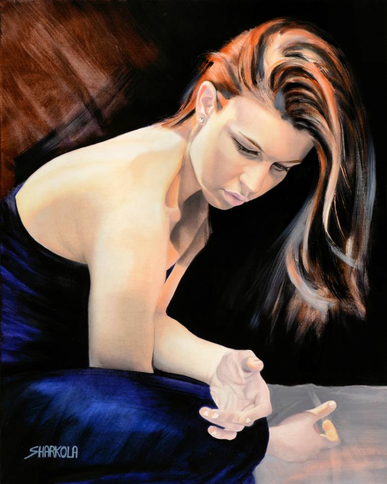 Sapphire is a Heroine Series painting focusing on light hitting angles of face and hands