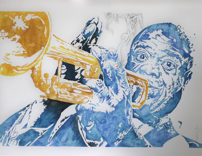 I have always loved the music of Louis Armstrong and wanted to show my appreciation of him. I used my normal style for the linework but decided to try something new by using watercolors instead of ink to create the final image. I really like the way the colors compliment each other and plan to use t...