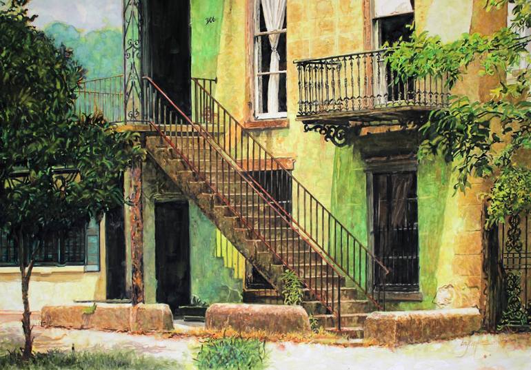 "Savannah Georgia" Watercolor painting in impressionistic style.