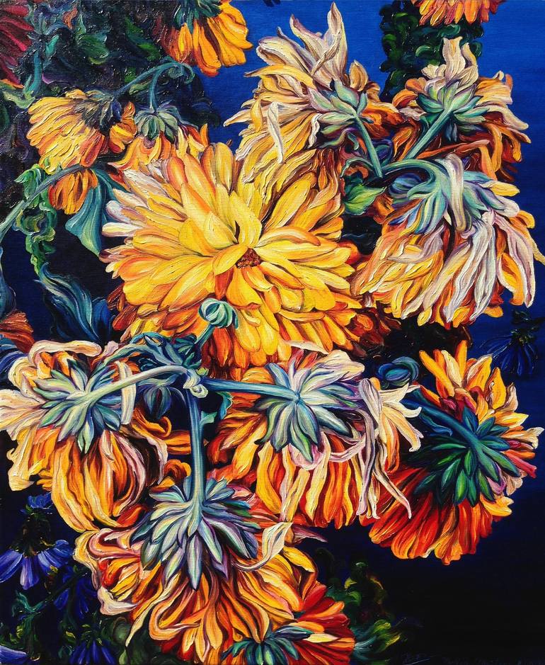 The first of four Chrysanthemums from the series "Beauty of Destruction". The serenity of the passing time. Chrysanthemums, frozen in time, in the unusual grace of fading colors. A wilting bouquet is so beautiful in its imperfection.