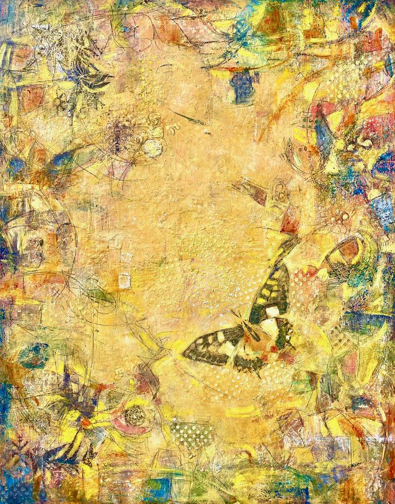 Although this is technically not an encaustic painting, there is wax in the medium of cold wax and oil. There are many layers of paint and textures expressing the warmth of yellow.Yellow is a stimulating and cheerful can lift our spirit, remove depression and add optimism and harmony to life, It ca...