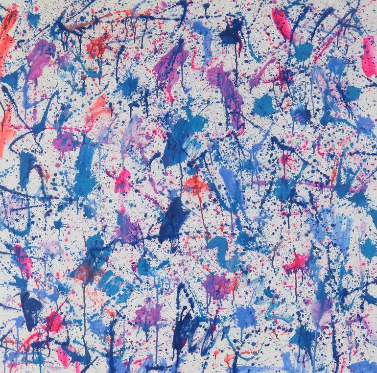 Abstract Expressionist acrylic on stretched canvas. Inspired by the wondrous paintings of artistic legend Sam Francis. This abstraction is a fusion of energy and poetry with sweeping, flowing forms and layers. Highly saturated pigments. Stretched, wired and ready to hang for display. Square format ...