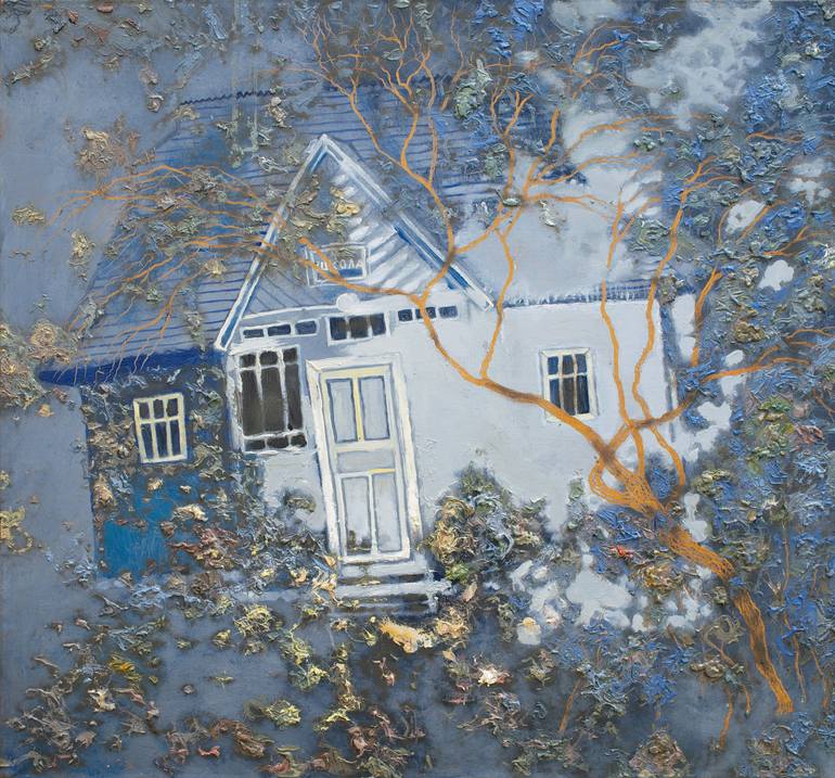 School. Berezhnytsia 70x75 cm. Canvas, oil 2024 Verkhovyna district. Ukraine This place is located deep in the mountains (Ivano-Frankivsk region, Ukraine). It is a poetic image — a kind of magical structure where people’s dreams, hopes, and desires have remained. A “temple of knowledge,” as it were...